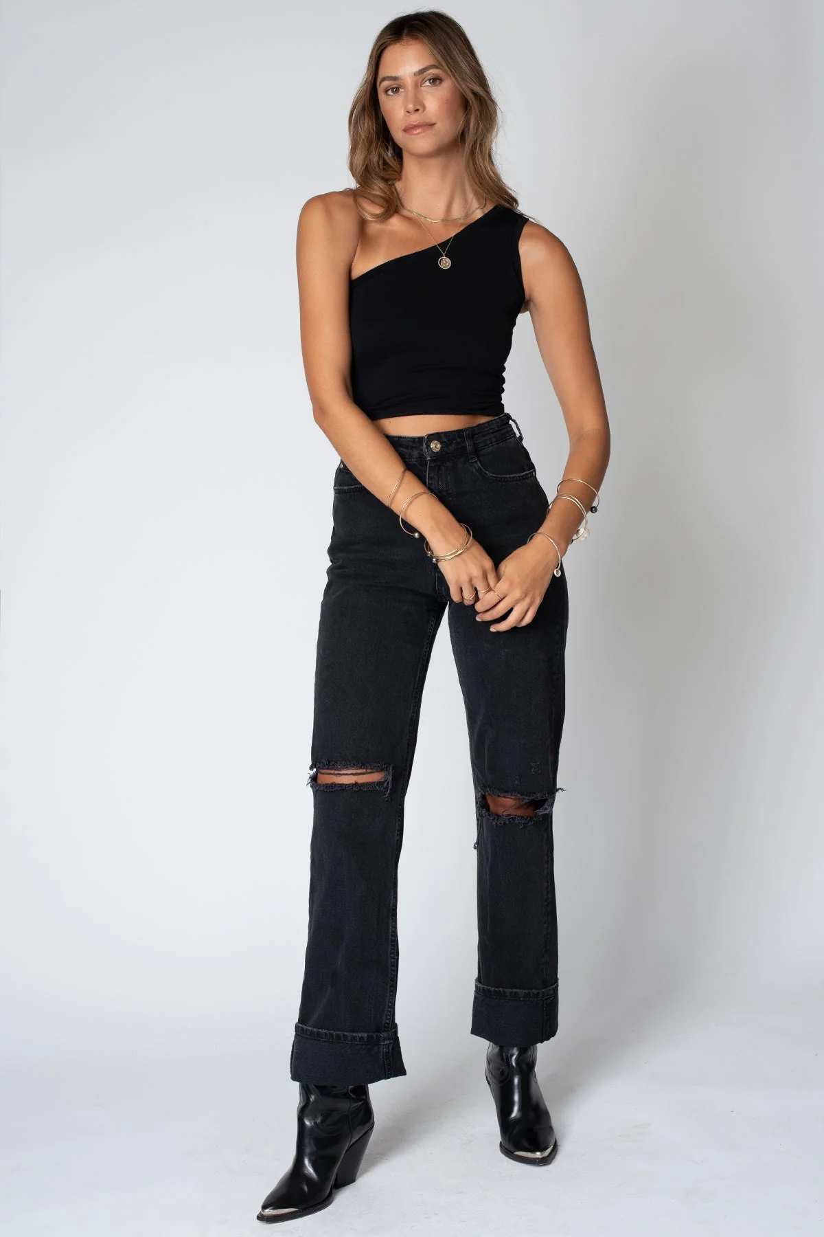 Transform your casual denim looks with this versatile crop essential. The one-shoulder silhouette pairs effortlessly for curated, editorial moments. Crafted from tencel cotton jersey, This tank delivers a smooth matte finish that is comfortable and give light support.