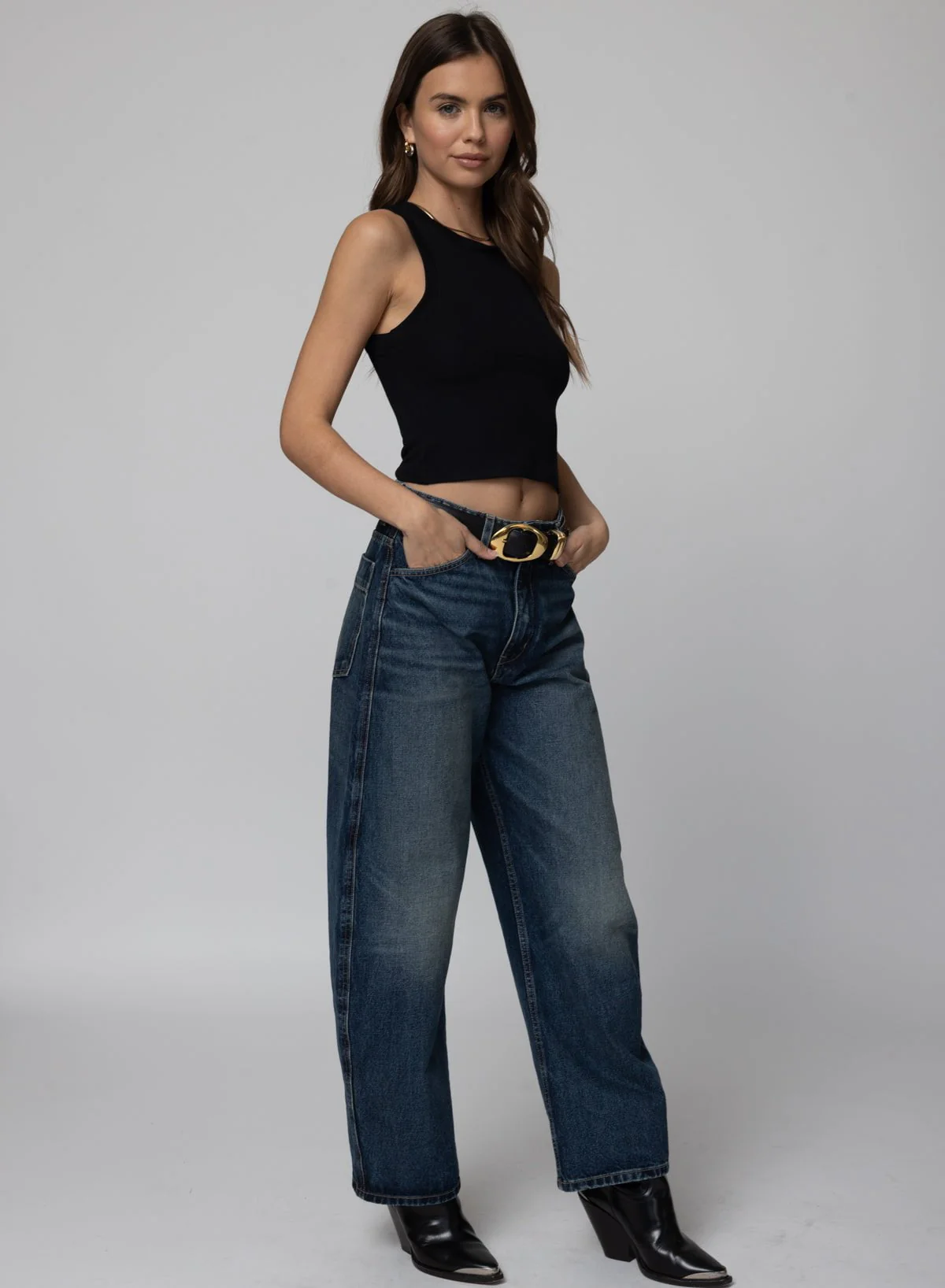 This classic high neck rib tank features an ultra-soft 2x1 rib knit blended with a hint of spandex, offering just the right amount of support. Designed to sit clean at the top of your waist band for the slightest peek of skin. This is not a crop and its not long enough to tuck in...it just right, the New Length.