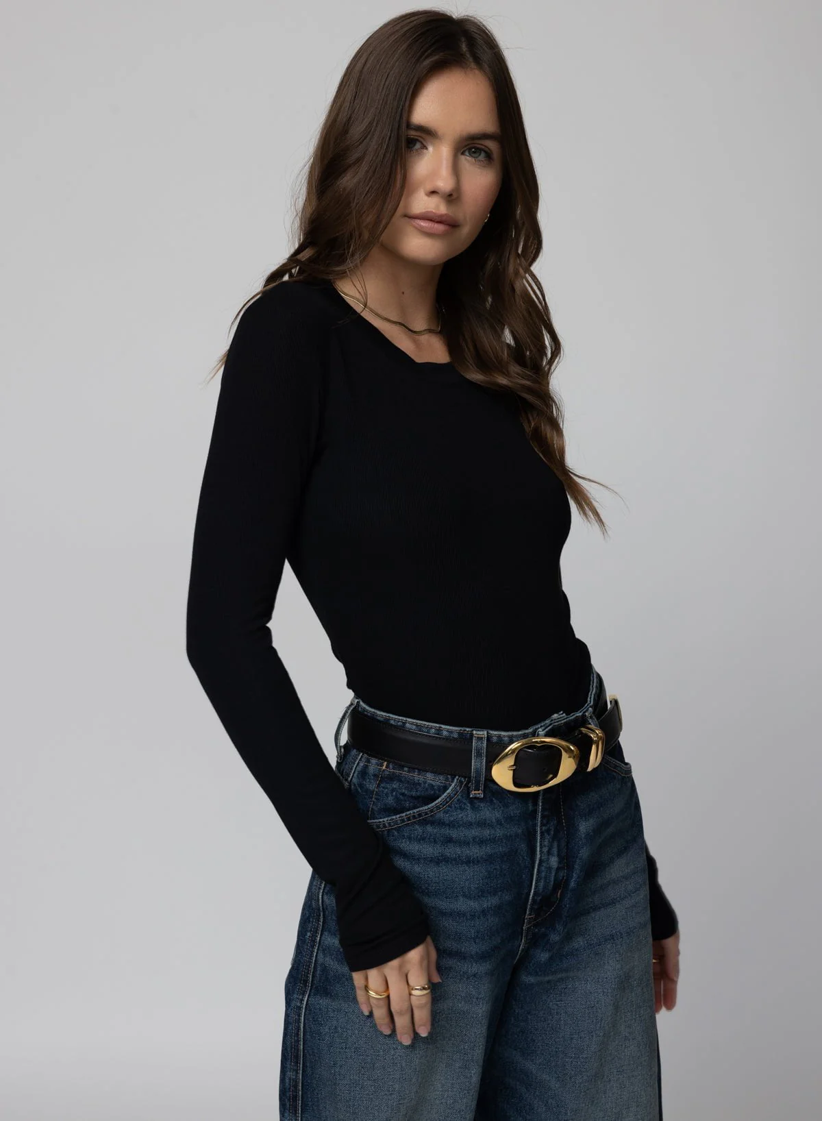 A true wardrobe essential, reimagined. Our Slim Long Sleeve Tee is cut with the right proportions: a length that tucks cleanly into denim, a classic crew neckline that dips just enough to flatter your necklace stack, and sleeves long enough to pull over your wrists