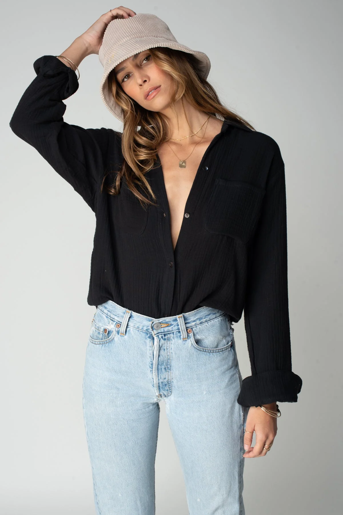 Soft, breathable, and effortlessly versatile — our 100% cotton double gauze is a signature Stillwater fabric for good reason. The texture is light and cloud-like, with just enough structure to keep things polished while still feeling undone. It’s the kind of fabric that moves with your life: airy and comfortable in warmer weather, and perfect for layering when the temperature drops.
